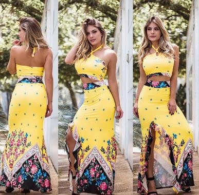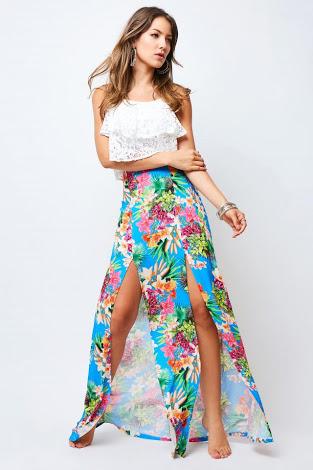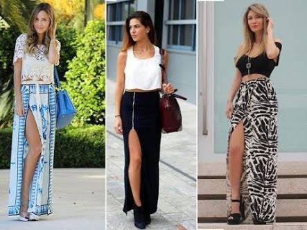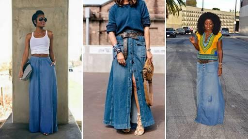 As saias longas vão bombar em 2019, sejam elas de renda, jeans, crochê, com fendas, usadas com cropped.